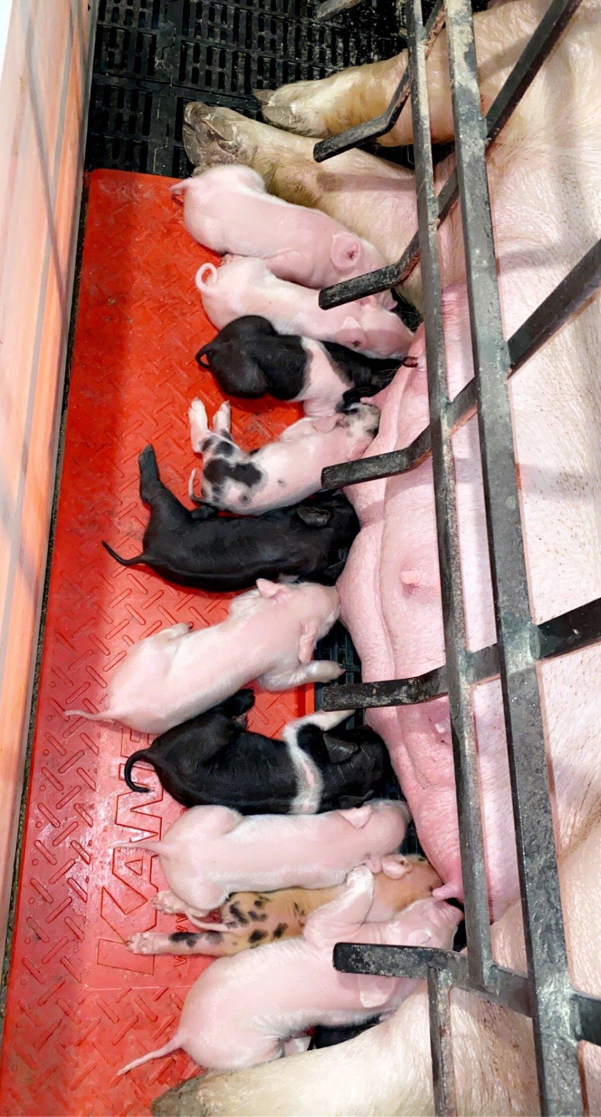 “Once the birthing starts, piglets come about every half hour,” Jordan explained. “I really like for them to do it as naturally as possible, but it can get to be a long night waiting some of them out.”