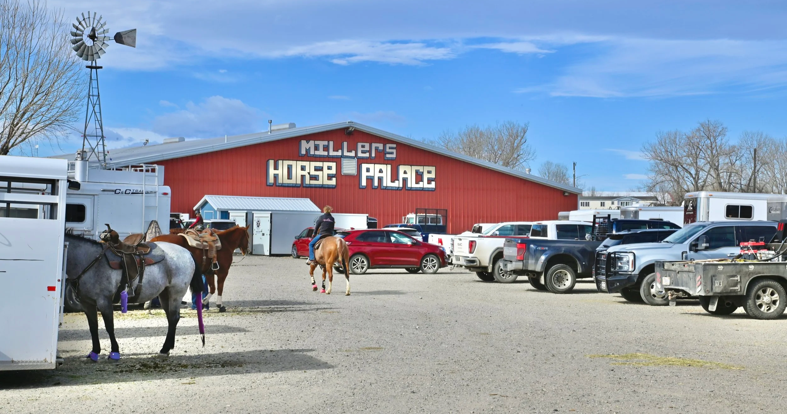 The Horse Palace Equestrian Center was built in 1992 and designed to be a place for team roping. It underwent several owners before Bob and Teresa Miller took over ownership in 2004.