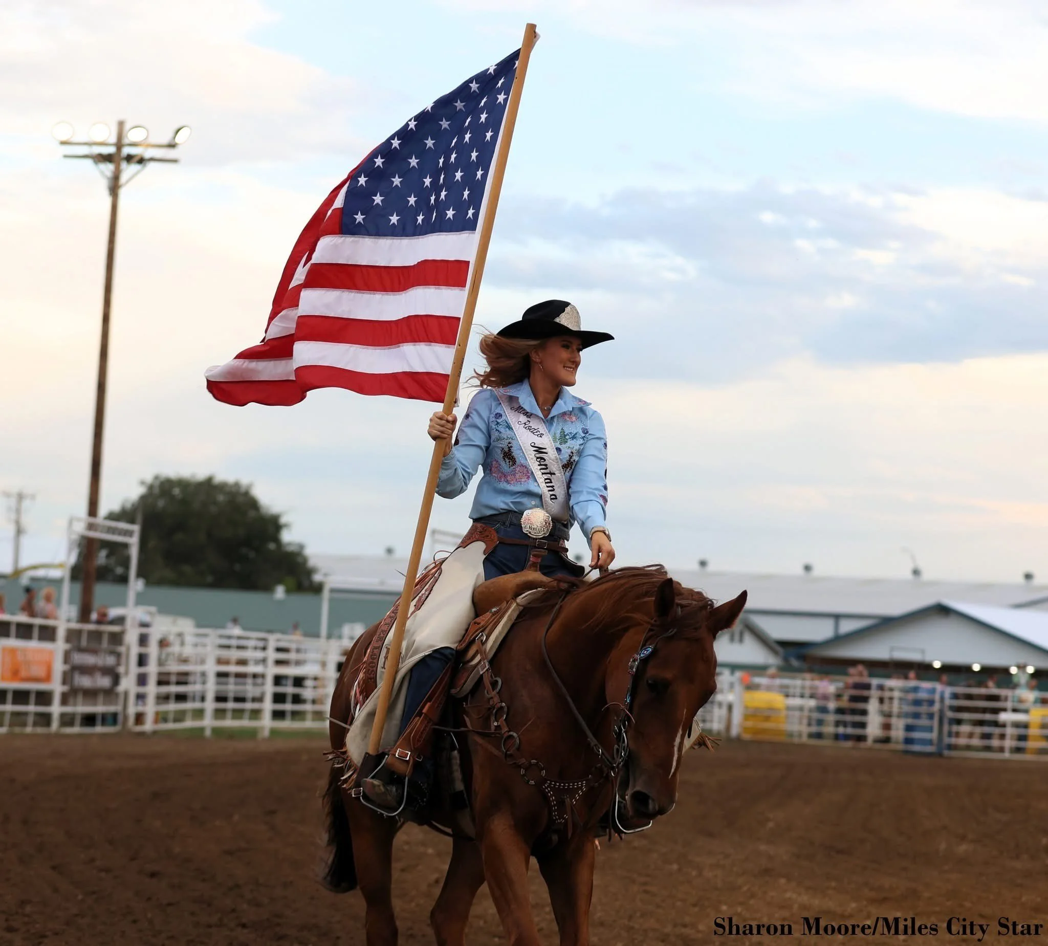 Representing Montana at major rodeo grand entries, parades and ceremonies promoting the sport of rodeo has been demanding. She attended 20 PRCA sanctioned Montana rodeos from Father’s Day through Labor Day, as well as rodeos in Colorado Springs, Cheyenne, WY and Pendleton, OR.